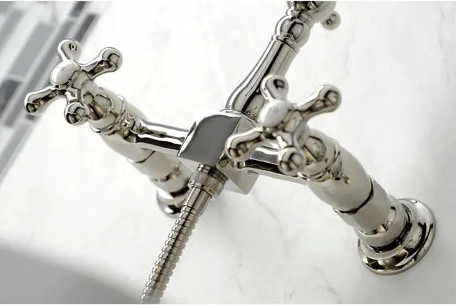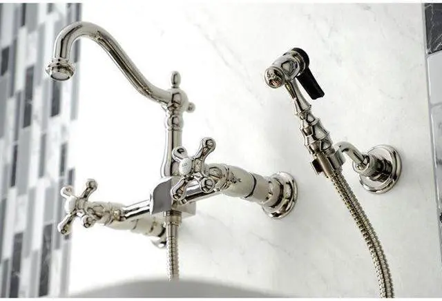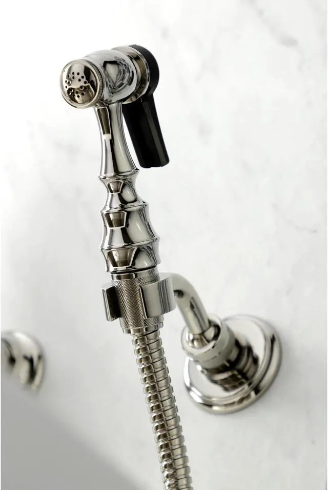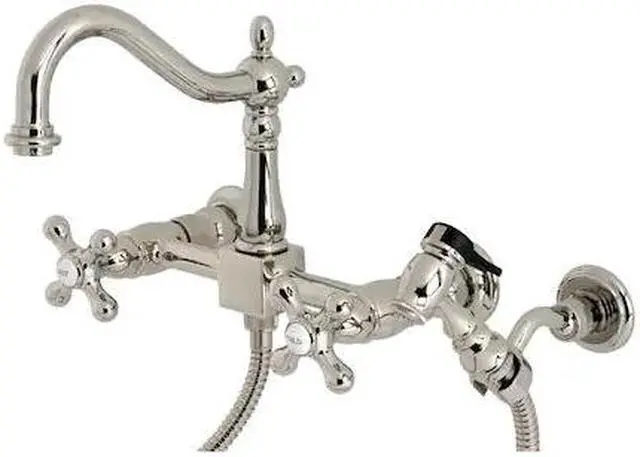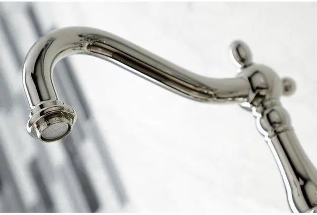 A lavish spark of traditionally stylized glamour is brought to your kitchen ensemble with this beautiful faucet. Because of the horizontal pop that it gives, it is more of a centerpiece, perfect for planning a design around. Additionally, the unique look is great for a variety of styles from Art Deco to Farmhouse. The polished nickel finish will also add a glistening elegance to your kitchen ensemble. Allow the brass construction and swivel abilities to provide a sturdy and reliant fixture as it maximizes your counter space. Celebrate sophistication and traditional decor with this statement piece.