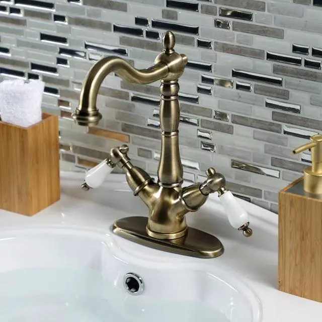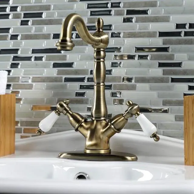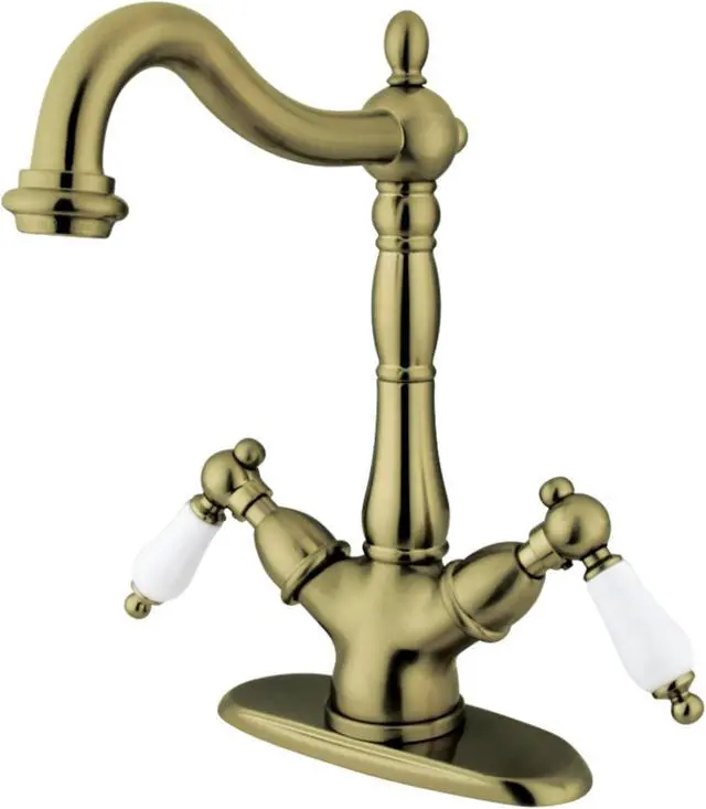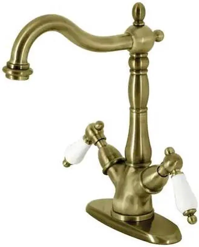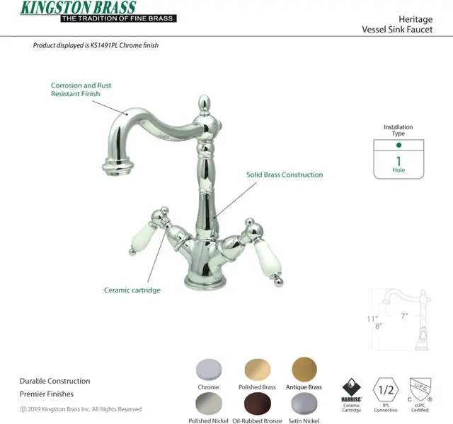 A lavish spark of traditionally stylized glamour is brought to your bathroom ensemble with this beautiful faucet. Kingston Brass vessel sink faucets perfectly complement the exquisite artistry of vessel sinks. Designed to handle the extra clearance needed for pairing with a vessel sink, this faucet boasts 8-1/4 inch of spout clearance. The Heritage Vessel Sink Faucet and its featured sturdy brass construction and premium antique brass finish are glamorize your home's traditional ensemble for years to come. Celebrate sophistication and traditional decor with this statement piece.