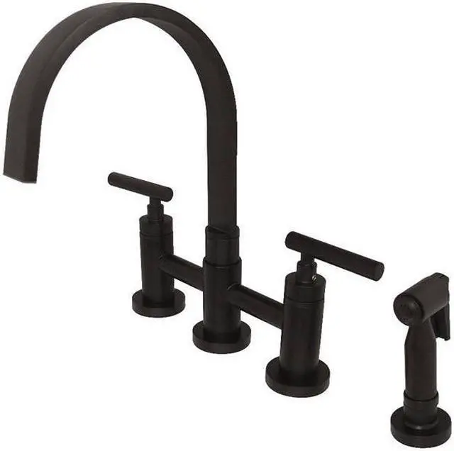 Embellish your contemporary home with the swankiness and elegance that this faucet provides. While bridge faucets typically have a traditional appeal, this particular design is a more modern interpretation. Allow the finish to pop against your surrounding kitchen decor due to the added architectural elements. The brass construction and swivel abilities provide a sturdy and reliant fixture, great for both dual and single bowl sinks. Emulate the distinguished opulence of Manhattan with this faucet's departure from mediocrity. Utilize the included matching finish side-sprayer for convenience in cleaning hard-to-reach areas.