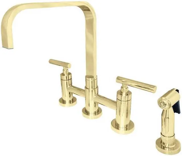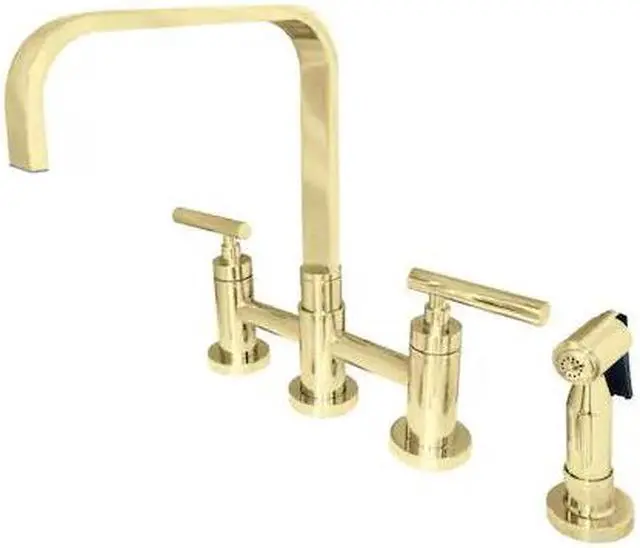 Embellish your contemporary home with the swankiness and elegance that this faucet provides. While bridge faucets typically have a traditional appeal, this particular design is a more modern interpretation. Allow the finish to pop against your surrounding kitchen decor due to the added architectural elements. The brass construction and swivel abilities provide a sturdy and reliant fixture, great for both dual and single bowl sinks. Emulate the distinguished opulence of Manhattan with this faucet's departure from mediocrity. Utilize the included matching finish side-sprayer for convenience in cleaning hard-to-reach areas.