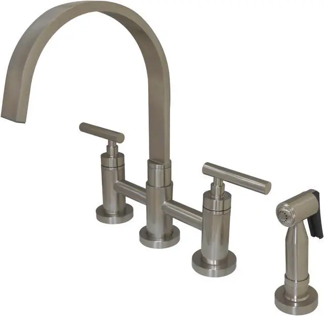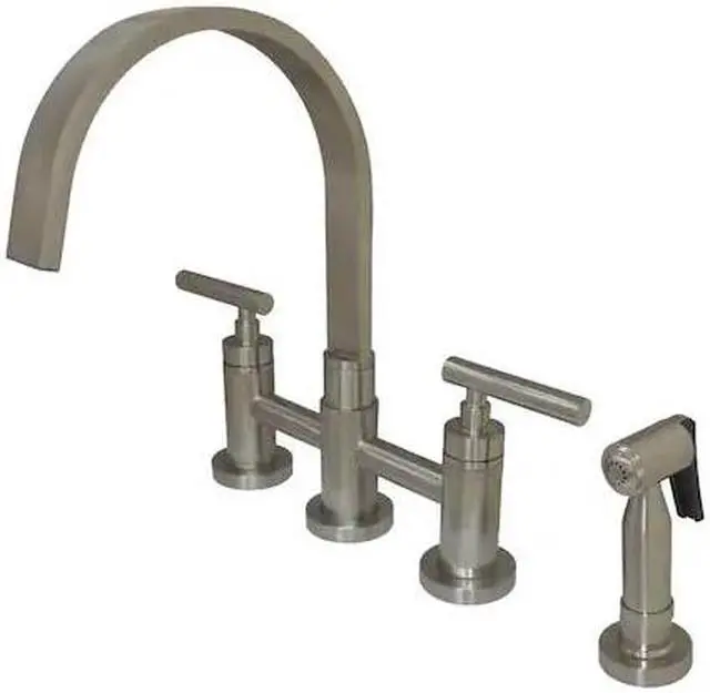 Embellish your contemporary home with the swankiness and elegance that this faucet provides. While bridge faucets typically have a traditional appeal, this particular design is a more modern interpretation. Allow the finish to pop against your surrounding kitchen decor due to the added architectural elements. The brass construction and swivel abilities provide a sturdy and reliant fixture, great for both dual and single bowl sinks. Emulate the distinguished opulence of Manhattan with this faucet's departure from mediocrity. Utilize the included matching finish side-sprayer for convenience in cleaning hard-to-reach areas.
