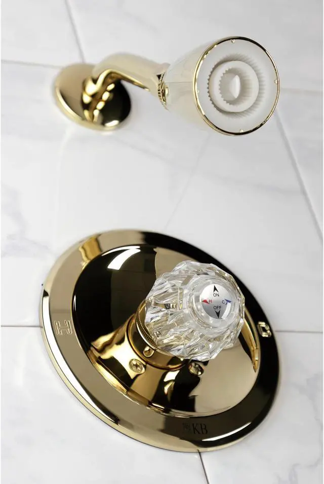 California Proposition 65: This product contains a chemical known to the State of California to cause birth defects or other reproductive harm. The exquisite design of this shower faucet tastefully flatters the elegant architecture of traditional homes with its fine detailing. Complete with an easy-to-turn knob handle, an optimum bathing experience awaits. Enjoy the sturdy brass construction and premium polished brass finish for a fixture that will last for years to come. Internal valve hardware is included for your use.