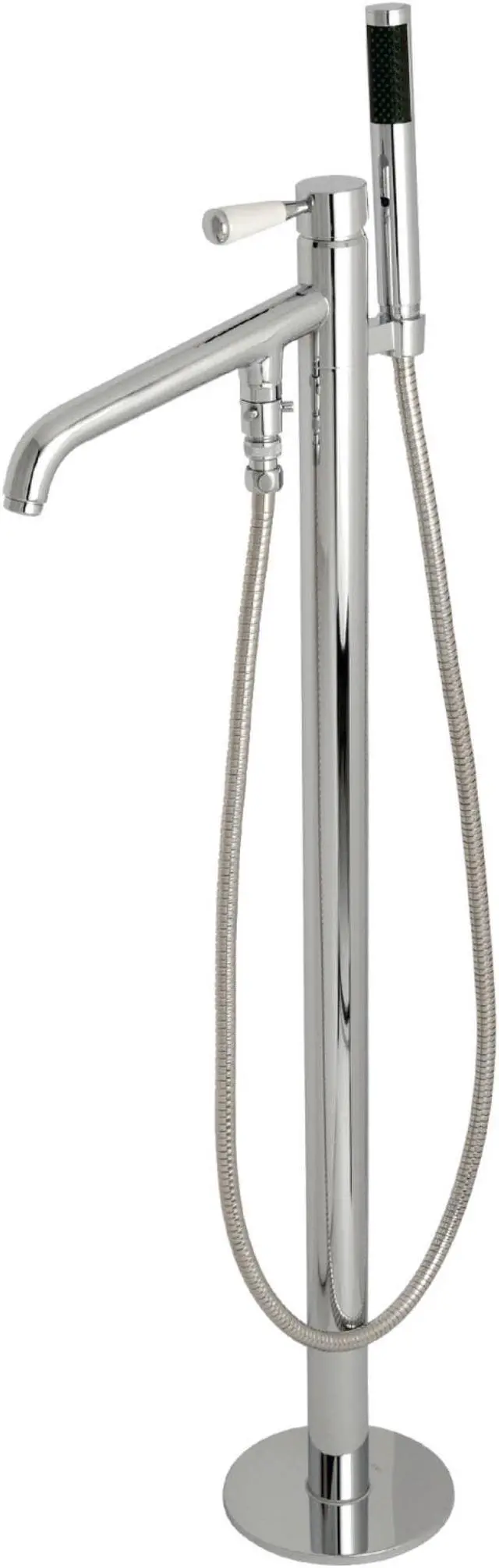 California Proposition 65: This product contains a chemical known to the State of California to cause birth defects or other reproductive harm. Distinguished for their stately configuration and artsy architecture, freestanding tub faucets are the perfect fixture for any contemporary home to both complement a freestanding tub and act as a beautiful ornamental piece in your bathroom. As the perfect accompaniment to your tub, the Freestanding Tub Faucet with Hand Shower will surely complete your refined bathroom decorum with the help of its premium, glistening finish and hand shower. The solid brass construction also makes for a heavy, quality made product.