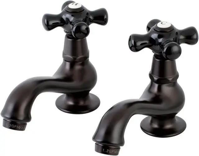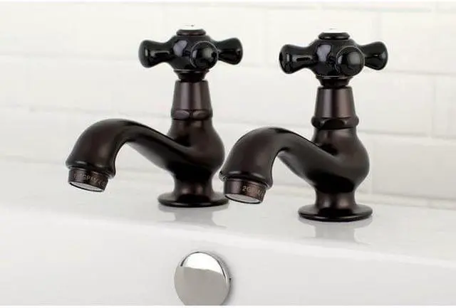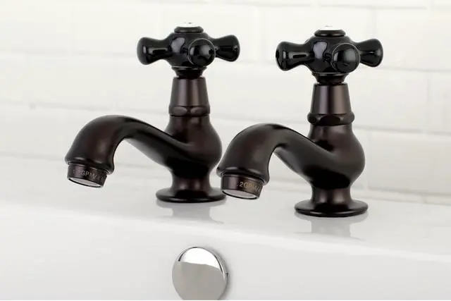 California Proposition 65: This product contains a chemical known to the State of California to cause birth defects or other reproductive harm. Crafted in commendations to English nobility, the exemplary design of this faucet manifests regality and elegance with its black porcelain handles. Basin tap faucets are a traditional design that allows users to mix water to their desired temperature within the sink basin. With cross handles for ease of use, the perfect temperature can be acquired with the separate cold and hot water taps. The Duchess Basin Tap Faucet With Cross Handle and its featured sturdy brass construction and premium oil rubbed bronze finish are guaranteed to glamorize your home's traditional ensemble for years to come. Glamorize your home today with the traditional elegance of this faucet.