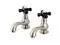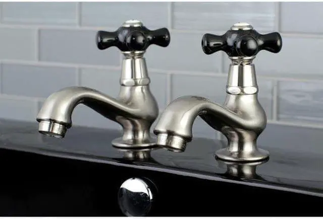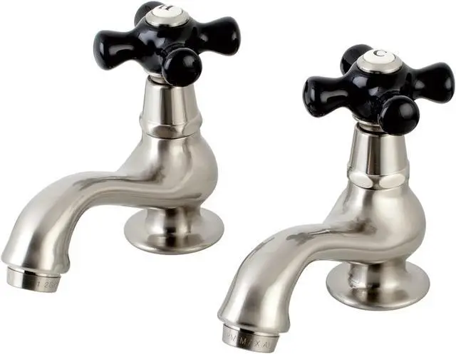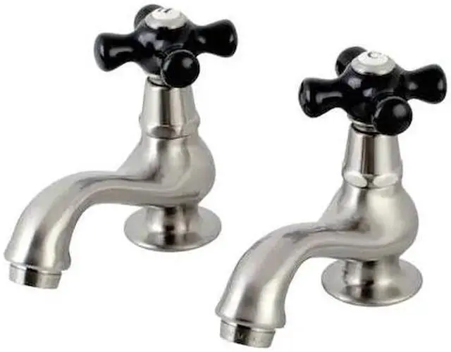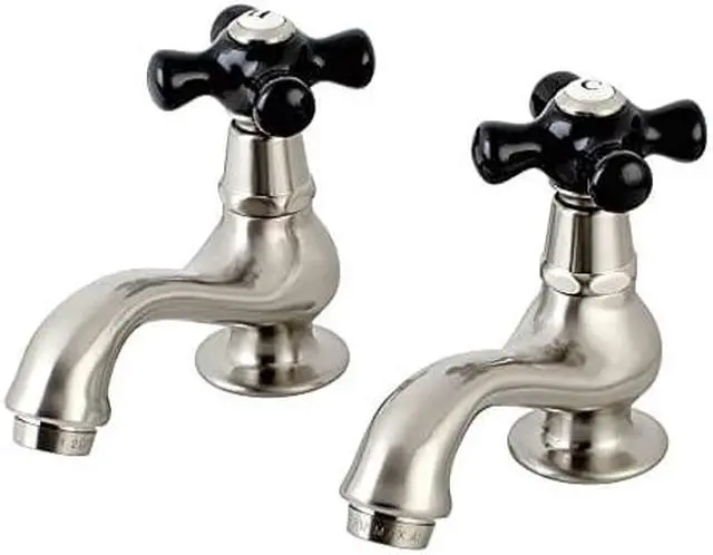 California Proposition 65: This product contains a chemical known to the State of California to cause birth defects or other reproductive harm. Crafted in commendations to English nobility, the exemplary design of this faucet manifests regality and elegance with its black porcelain handles. Basin tap faucets are a traditional design that allows users to mix water to their desired temperature within the sink basin. With cross handles for ease of use, the perfect temperature can be acquired with the separate cold and hot water taps. The Duchess Basin Tap Faucet With Cross Handle, and its featured sturdy brass construction and premium brushed nickel finish are guaranteed to glamorize your home's traditional ensemble for years to come. Glamorize your home today with the traditional elegance of this faucet.