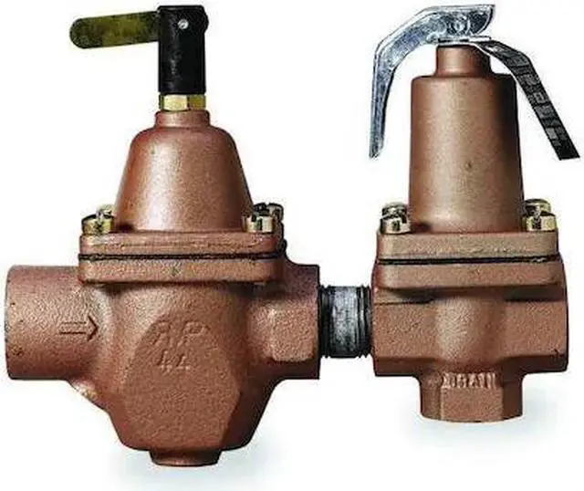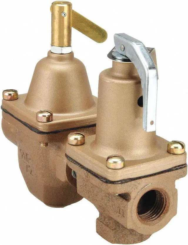 Combination Fill and Relief Valve, Body Material Iron, Inlet Type FNPT, Outlet Type FNPT, Inlet Size 1/2 in, Outlet Size 1/2 in, Factory Set Pressure 15 psi, Pressure Range 10 to 100 psi, Not Applicable BtuH, Disc Material Silicone, Overall Height 5 1/16 in, Application Commercial and Residential Hydronic Heating Systems, Overall Length 6 1/2 in, Seat Material Bronze, Spring Material Stainless Steel, Temp. Range 0 Degrees to 212 Degrees F, Test Lever Test Lever Included, Standards Not Applicable. This item has been restricted from sale in the following state (s): []
