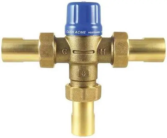 Thermostatic Mixing Valve, Body Material Brass, Inlet Type NPT, Outlet Type NPT, Inlet Size 1/2 in, Outlet Size 1/2 in, Temp. Range 85 Degrees to 130 Degrees F, Max. Pressure 230 psi, Overall Height 2 3/16 in, Overall Width 5 5/8 in, Standards ASSE, ASSE 1017, ASSE 1069, ASSE 1070, CSA, CSA B 125.3, IAPMO, NSF/ANSI/CAN 372, NSF/ANSI/CAN 61, Compliance ASSE 1017, ASSE 1069, ASSE 1070, CSA B 125.3, NSF 372, NSF 63.