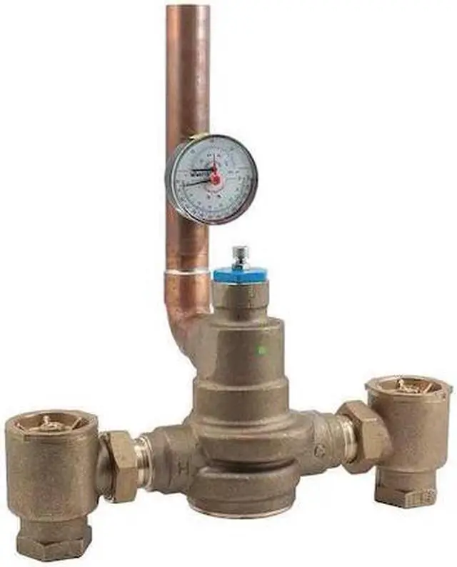 Thermostatic Mixing Valve, Body Material Bronze, Flow Rate 127 gpm at 45 psi, Inlet Type NPT, Outlet Type NPT, Inlet Size 1 1/4 in, Outlet Size 1 1/2 in, Temp. Range 90 Degrees to 160 Degrees F, Max. Pressure 125 psi, Overall Height 9 1/4 in, Overall Width 15 1/2 in, Inlet Temperature (Cold) 40 Degrees to 80 Degrees F, Inlet Temperature (Hot) 120 Degrees to 180 Degrees F, Standards ASSE 1017, CSA B125. This item has been restricted from sale in the following state (s): []