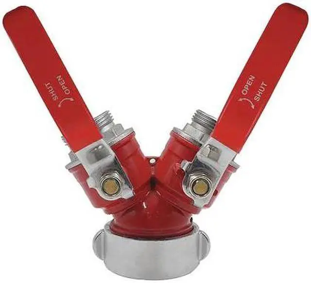 California Proposition 65: This product contains a chemical known to the State of California to cause birth defects or other reproductive harm. Fire Hose Ball Valve, Application Divides Single Flow to Double Flow, Ball Material Brass, Body Material Brass, Body Style Wye, Handle Material Steel/Vinyl, Handle Type Lever, Inlet Fitting Type Female NH, Inlet Size 2 1/2 in, Maximum Pressure 200 psi, Outlet Size 1 1/2 in x 1 1/2 in, Outlet Type Male NH x Male NH, Overall Length 6 5/16 in, Product Type Fire Hose Ball Valve, Seat Material PTFE, Stem Material Brass, Valve Structure 2 Piece. This item has been restricted from sale in the following state (s): []