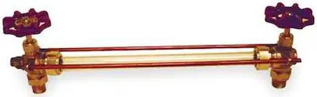 Water Gauge, Body Material Bronze, Gauge Glass Diameter 5/8 in, Gauge Glass Length 10 in, Center to Center Length 11 1/4 in, Media Temperature - Maximum 350 Degrees F, Gasket Material EPDM, Connection Type NPT, Compatible Pipe Size 3/8 in, Number of Guard Rods 2, Valve Type Needle Drain, Operating Pressure - Maximum 300 psig, Stem Packing Material TFE, Standards CRN Registered OF 6616.5C. This item has been restricted from sale in the following state (s): []