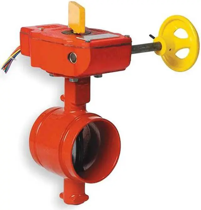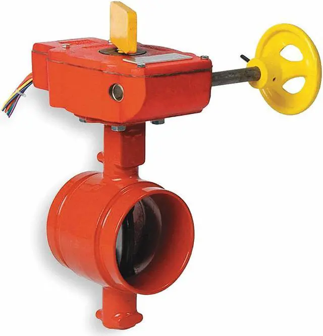 Butterfly Valve, Grooved Style, Body Material Ductile Iron, Max. Water Pressure 300 psi, Pipe Size 4 in, Temp. Range -40 to 230 Degrees F, Liner Material EPDM, Disc Material Ductile Iron, Handle Type Gear Operated Handwheel, Number of Bolt Holes 4, Standards FM, UL Listed. This item has been restricted from sale in the following state (s): []