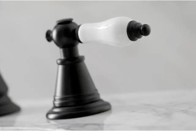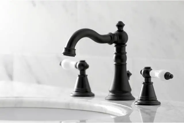 The exquisite design of this faucet tastefully flatters the elegant architecture of traditional homes with its fine detailing. Ideal for more spacious bathrooms, widespread faucets are more spread apart and feature a 3-hole installation. The English Classic 8 in. widespread bathroom faucet with retail pop-up and its featured sturdy brass construction and premium matte black finish are glamorize your home's traditional ensemble for years to come. A matching finish drain is also included.