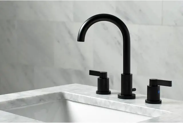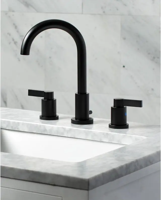 The chic fashion of this faucet is distinguished by its expressive artistry and flat, ergonomic levers. Ideal for more spacious bathrooms, widespread faucets are more spread apart and feature a 3-hole installation. The NuvoFusion 8 in. widespread bathroom faucet with brass pop-up and its featured sturdy brass construction and premium matte black finish are glamorize your home's modern ensemble for years to come. Revive the obsolete with the illustrious prestige of this fixture. A matching finish drain is also included.