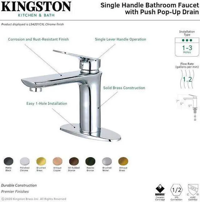 This faucet's modern features create a bold and edgy design in your bathroom. Single-hole bathroom faucets provide a more streamlined look. Also, they will allow your bathroom to appear more spacious with the limited counter space they require. The Frankfurt Single Hole single-handle bathroom faucet and its featured sturdy brass construction and premium oil rubbed bronze finish are glamorize your home's modern ensemble for years to come. A matching finish drain is also included.
