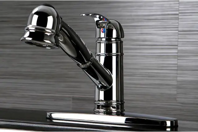The exquisite design of this faucet tastefully flatters the elegant architecture of traditional homes with its fine detailing. An excellent options for smaller kitchens, the angled spout and extendable hose reach provide an optimized use of space. Minimalist design along with a classic style help you tackle your tough messes with the Eden Pull-Out Kitchen Faucet's two-function sprayer. The brass construction and single handle also provide a sturdy, reliant, and easy to use fixture.