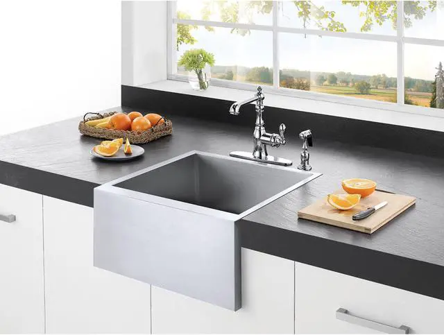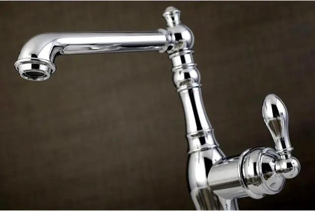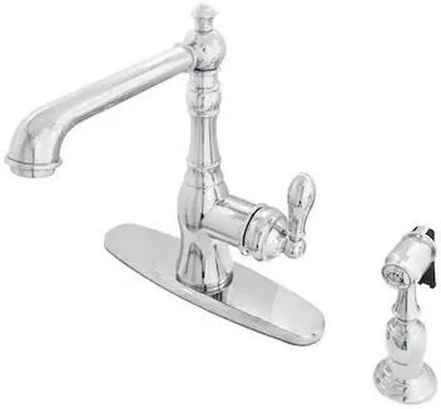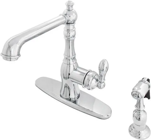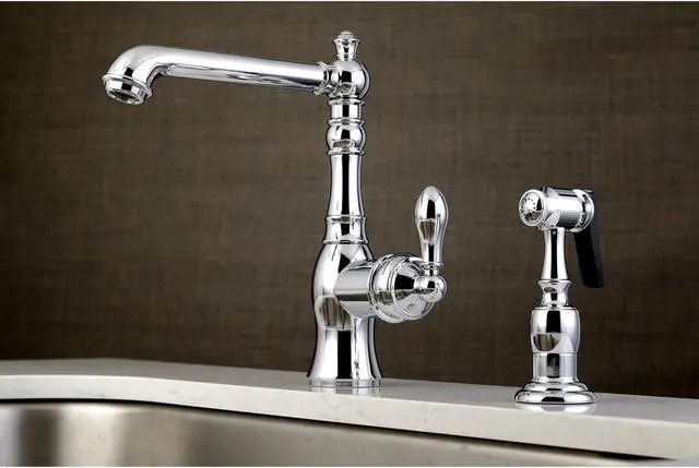 This faucet is perfect for those seeking inspiration from the exquisite artistry and architecture of the traditional Victorian era. Easily adaptable to any kitchen, the American Classic Single-Handle Kitchen Faucet is prized for its easy-to-use single handle. This makes it the perfect fixture for multitasking as you can adjust temperature and volume in one swipe. Enjoy the strong and durable brass material and polished chrome finish that will last for years to come. The included matching finish side-sprayer also adds convenience in cleaning hard-to-reach areas.
