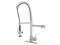 Transcend your home into a futuristic utopia with this faucet's brilliant craftsmanship and modern, curved spout with ergonomic levers. Designed for optimum versatility and functionality, the multiple spray settings and extendable spout of this pre-rinse faucet make for an enjoyable cleaning experience. Additionally, the rotating swivel spout leaves no area of the sink untouched as the industrial look of the exposed spring provides residential function. The brushed nickel finish will also provide a long lasting and warm touch to your kitchen ensemble.
