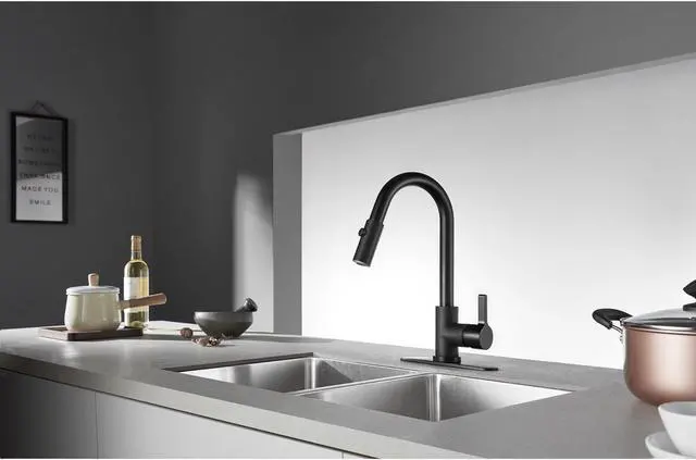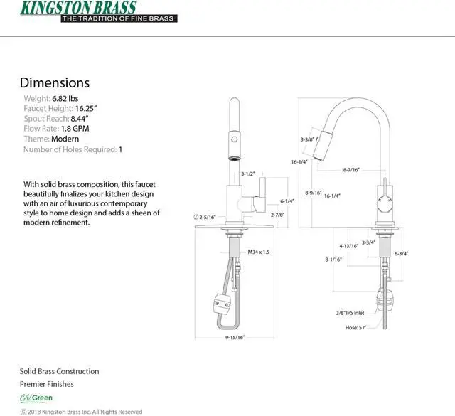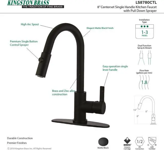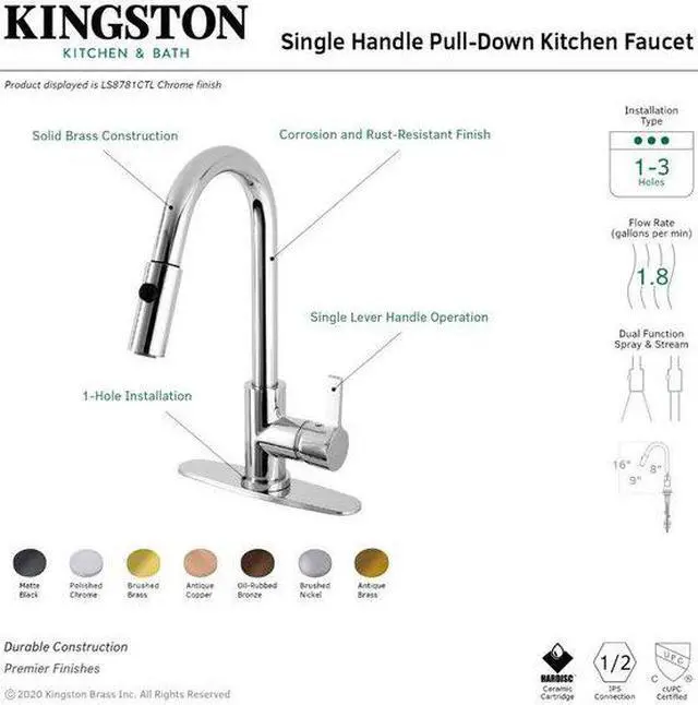 Transcend your home into a futuristic utopia with this faucet's brilliant craftsmanship and modern, curved spout with ergonomic levers. Designed for optimum versatility and functionality, modern day technology is provided for a state-of-the-art product. The Continental single-handle pull-down kitchen faucet features a high arching spout to easily clean larger dishes, swivel ability to reach any area in and around your sink, and a dual function pull-down sprayer to tackle tough messes.