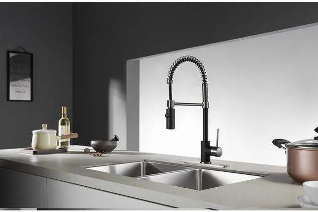Gourmetier LS8779NYL Single-Handle Pull-Down Kitchen Faucet, Matte Black/Brushed Nickel