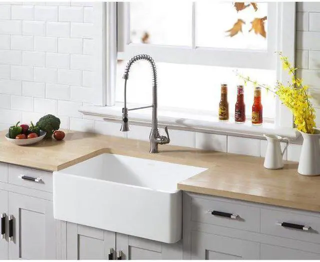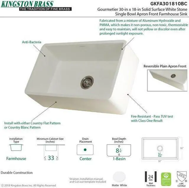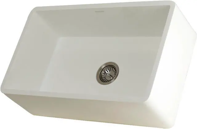 Coordinated with an elegant pairing of quality construction interwoven with sophisticated designs and styles, the Arcticstone Collection is crafted to bring aesthetic beauty alongside exceptional performance with its line of farmhouse kitchen sinks. Farmhouse sinks have an apron front that causes the sink to be the centerpiece of kitchen design. This unique feature prevents water spillage on cabinetry while adding aesthetic appeal. Constructed from a high quality mixture of stone and acrylic polymers, a non-porous, stain-resistant surface is generated, as the thick material provides long-lasting durability and reliability. Also provided is the single bowl which lends an ease in washing larger dishes. For a generous washing area, the Arcticstone sink has overall dimensions of 30 inch (L) x 18 inch (W) x 9-9/16 inch (D). Allow this farmhouse sinks to impeccably complete your contemporarily styled kitchen.