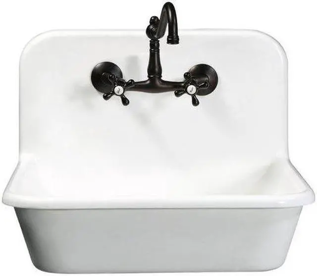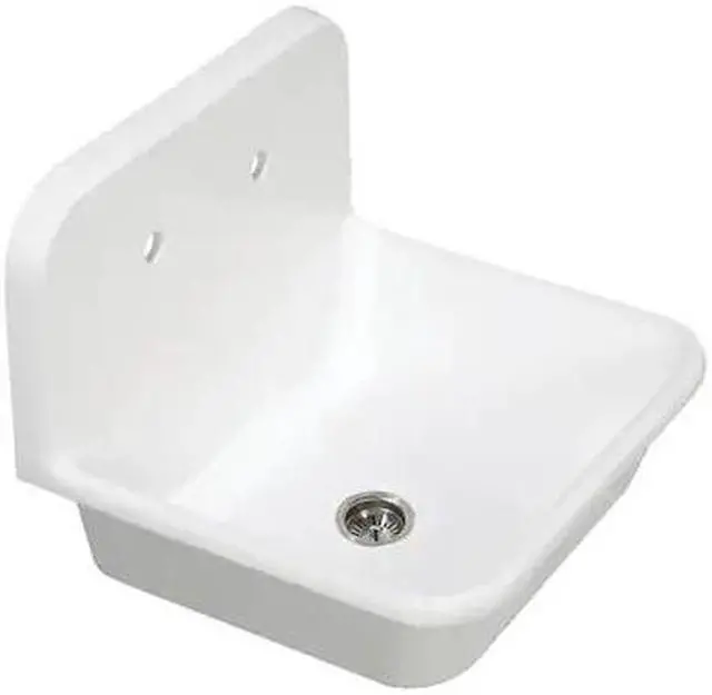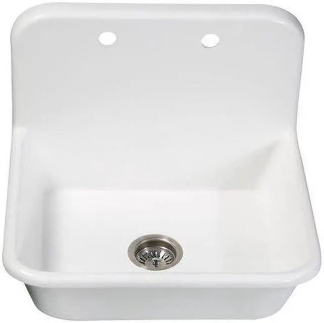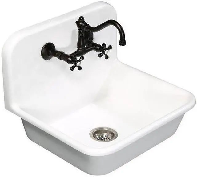 In pairing with other types of kitchen styles, this Arcticstone 24" x 21" farmhouse kitchen sink offers a wide, spacious bowl for a convenient workspace in washing kitchen appliances. Inspired by the early 20th century Midwest lifestyle, the sink features a backplash 1-5/8" thick with 2 faucet holes 8" apart for installation of a wall mount faucet. The solid surface material includes high density and non-porous construction aiding to hinder bacteria and mold growth. Easy to clean, the material is mixed with stone and acrylic polymers, sturdy and durable to perform reliably as well as maintaining its beauty. The Arcticstone offers sophisticated designs, crafted to bring aesthetic appeal alongside exceptional performance with its collection of kitchen sinks. Best coordinated with other classic kitchen designs.