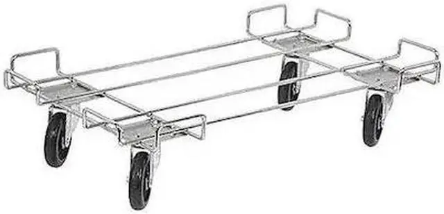 Dolly Base, Caster Frame Material Steel, Caster Wheel Diameter 5 in, (2) Swivel, (2) Swivel with Brake Caster Wheel/Configuration, Caster Wheel/Tread Material Rubber, Overall Depth 48 in, Overall Height 7 1/2 in, Overall Width 20 in, 150 lb Load Capacity, Steel, Silver, Chrome, Garbage Bins Compatible Product Type, (1) Stacking Basket dolly base, 20 in x 48 in. This item has been restricted from sale in the following state (s): []