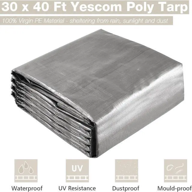 - Strong & Durable Shelter - 30 x 40 ft silver and black poly tarps form a strong and durable shelter from sunlight, rain and dust, cooler underneath in the summer; With at least 3 years lifetime, it features good ability of anti-aging for long-time use