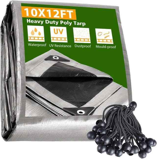 - Strong & Durable Shelter - 9 x 12 ft silver and black poly tarps form a strong and durable shelter from sunlight, rain and dust, cooler underneath in the summer; With at least 3 years lifetime, it features good ability of anti-aging for long-time use