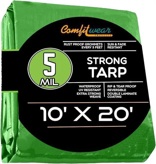 COMFITWEAR 5 Mil Green Tarp Super Strong Multi-Purpose Extra Strong Tarps Car Tarp Boat Tarp Camping Tarp General Purpose Waterproof Tarp Cover ( 10' x 20')