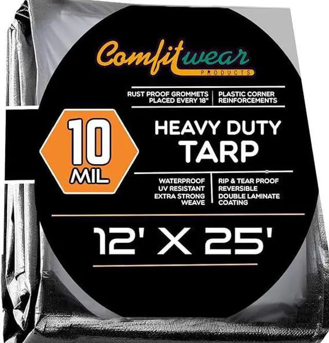 COMFITWEAR 10 Mil Silver And Black Super Heavy Duty Tarp Cover Reinforce Grommet Pool Cover Boat Tarp UV Resistant Poly Tarpaulin Canopy Tent Waterproof Tarp Cover ( 12' x 25')