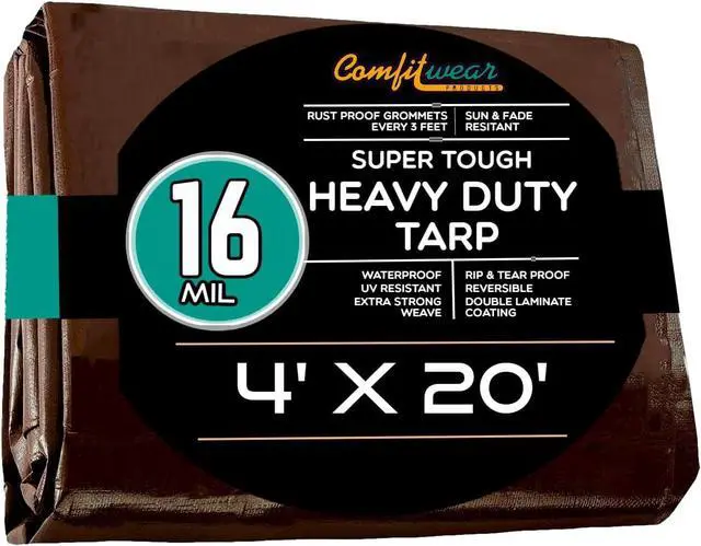 COMFITWEAR 16 MIL Brown Multi-Purpose Extra Heavy Duty Tarps, Car Tarp Camping Tarp Heavy Duty Tarp, Super Heavy Duty Tarp Cover General Purpose Waterproof Tarp Cover (4' X 20')