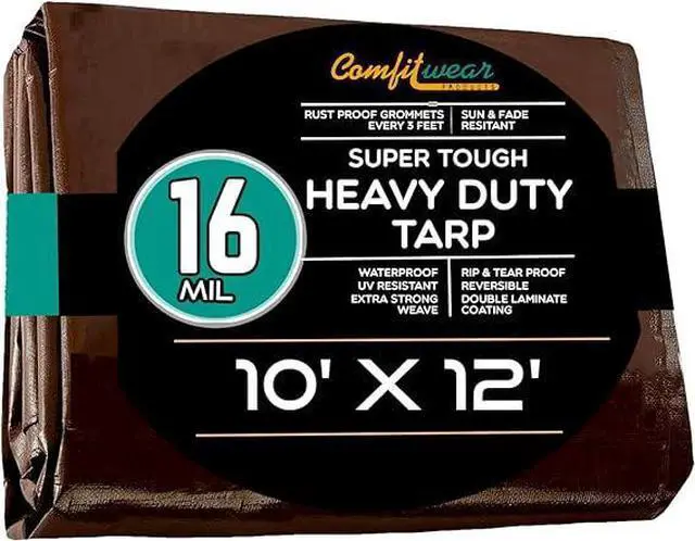 COMFITWEAR 16 MIL Brown Multi-Purpose Extra Heavy Duty Tarps, Car Tarp Camping Tarp Heavy Duty Tarp, Super Heavy Duty Tarp Cover General Purpose Waterproof Tarp Cover (10' x 12')