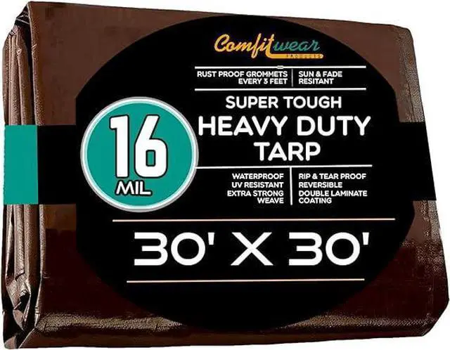 COMFITWEAR 16 MIL Brown Multi-Purpose Extra Heavy Duty Tarps, Car Tarp Camping Tarp Heavy Duty Tarp, Super Heavy Duty Tarp Cover General Purpose Waterproof Tarp Cover (30' x 30')