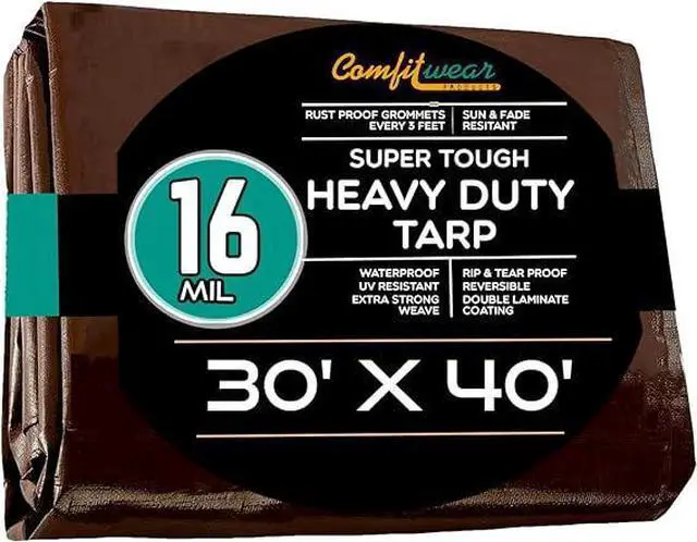 COMFITWEAR 16 MIL Brown Multi-Purpose Extra Heavy Duty Tarps, Car Tarp Camping Tarp Heavy Duty Tarp, Super Heavy Duty Tarp Cover General Purpose Waterproof Tarp Cover (30' x 40')