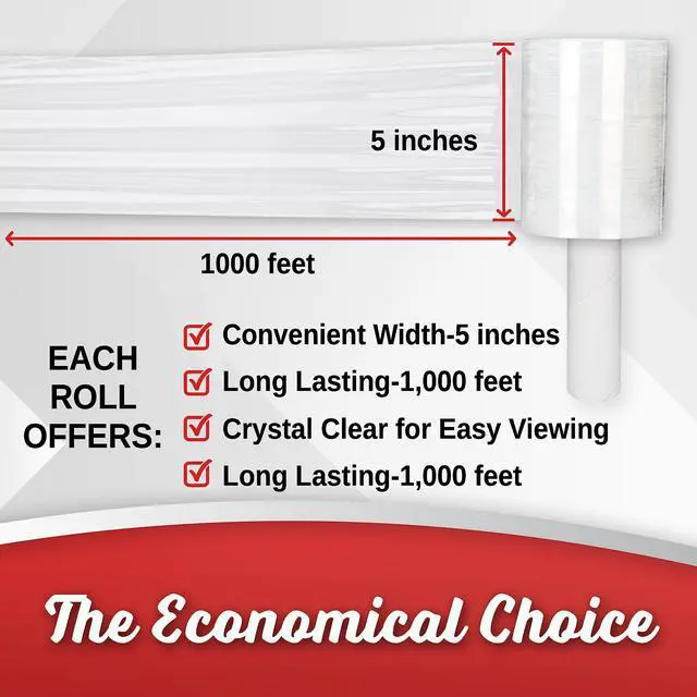 ![]() 12 Pack Industrial Strength Mini Hand Stretch Wrap 5" 1000 Ft Roll 80 Gauge T... | ![]() Stretch Wrap 4 Pack 18" x 1100 SqFt – Heavy Duty 80 Gauge Shrink Wrap Rolls f... | ![]() Stretch Wrap with Handle Industrial Strength 4 Pack 11" x 1000 Ft 60 Gauge Th... | ![]() Black Stretch Wrap Industrial Strength Extra Thick 4 Pack 18" 1100 SqFt 80 Ga... | ![]() 12 Pack Industrial Strength Mini Hand Stretch Wrap with 2 Plastic Handles, 60... | |