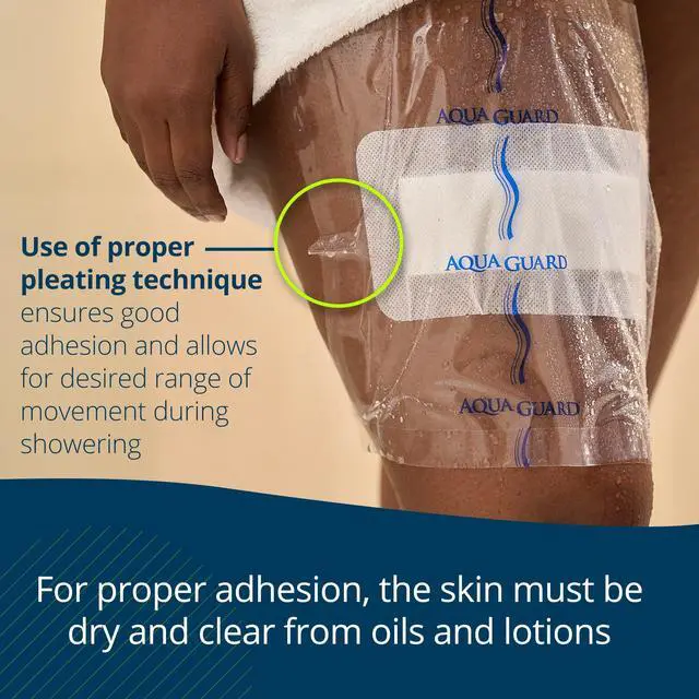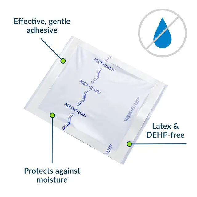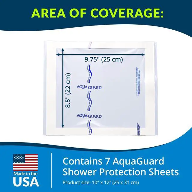 Each convenient AquaGuard shower sheet provides a moisture barrier to help keep surgical sites, wounds, and dressings dry when showering. Tattoos, too. A specially designed adhesive is used to protect the area during showers and allows the sheet to be gently removed afterward. AquaGuard shower covers are made in the USA with thoughtful features for quality hospital and home healthcare.
