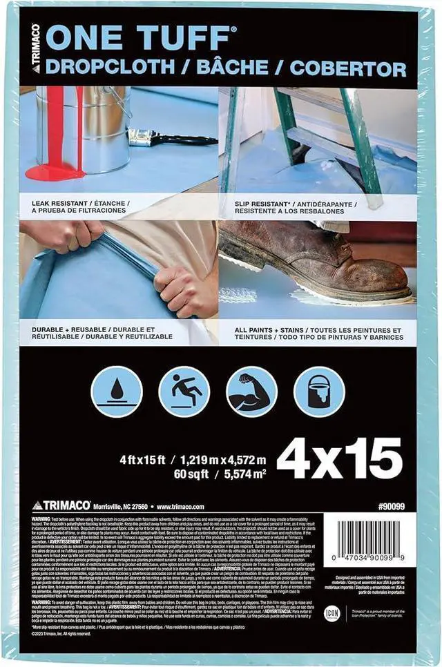 One Tuff Professional Grade Drop, 0.011 In T, 4 W X 15 Ft L, Blue, Cloth, 4'x15 feet, 60 Sq