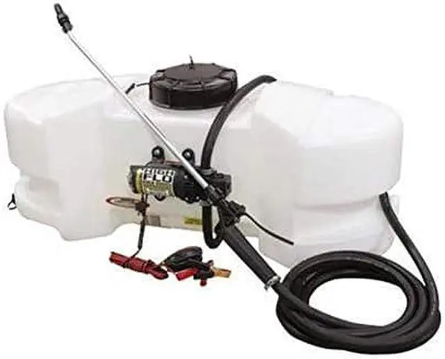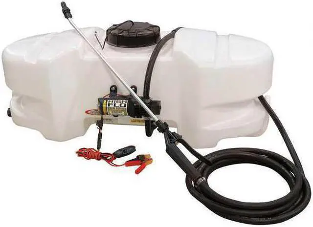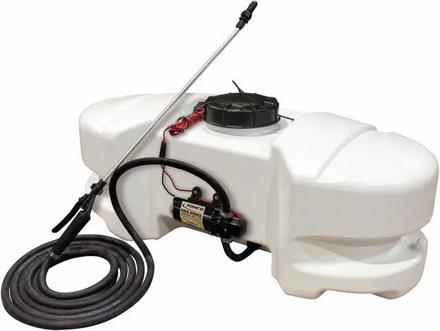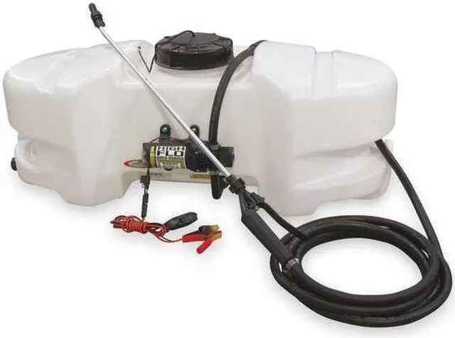 The FIMCO 15 Gallon Standard Spot Sprayer is most widely used for weed and pest control. The UV resistant, molded polymer tank has a 5 inch tethered lid for easy access and is completely drainable. This model lawn and garden sprayer features the best in class High Flo High Performance 1.2 GPM 12 Volt Pump with inline fuse protection. The Lever Grip Spray Wand features an adjustable spray pattern poly tip which adjusts from a stream, fan or cone and distributes up to 25 feet of horizontal spray, 15 feet of vertical spray and comes with 15 feet of 3/8 inch hose.
