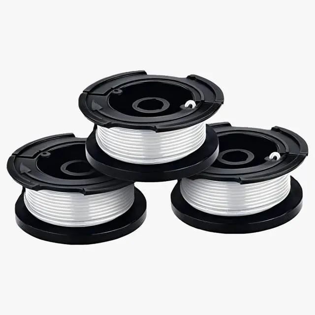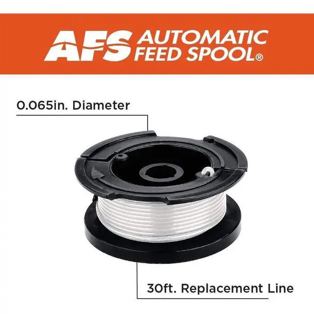 The BLACK+DECKER AF-100-3ZP 30 ft 0.065 in. Line String Trimmer Replacement Spool 3-Pack is designed to make yard work easier by eliminating the hassle of hand-winding spools. This replacement spool system is compatible with a wide range of BLACK+DECKER string trimmer models, including GH400, GH500, GH600, GH610, GH900, GH912, ST6600, ST7000, ST7700, CST1000, CST1200, CST2000, MTC220, MTE912, NST2018, NST1118, NST2118, LST220, LST300, LST400, LST420, and LST136. Each spool features a 30 ft factory-wound line with a 0.065 in. diameter, ensuring a consistent and reliable feed for efficient trimming. The automatic feed spool (AFS) system uses centrifugal force to dispense the trimmer line as needed, reducing interruptions and keeping your trimming smooth. This 3-pack of replacement spools is ideal for maintaining your lawn and garden, providing a convenient solution for users seeking a dependable trimmer line for BLACK+DECKER string trimmers. Includes a 2-year warranty for added peace of mind. COMPATIBLE WITH BLACK AND DECKER - Designed for use with Black and Decker string trimmers EASY REPLACEMENT - Precut trimmer line allows for quick and hassle-free installation DURABLE PERFORMANCE - Strong trimmer line delivers reliable cutting for tough weeds MULTI-PACK VALUE - Includes 3 pieces to keep your trimmer ready for multiple uses ALL PURPOSE USE - Suitable for edging, trimming, and maintaining your lawn and garden