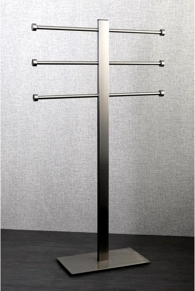 Contemporary style. Brass bolt. Three tier sliding rails. Weighted base prevents accidental tip-overs. Rust resistant. Rectangular base. Warranty: 10 years. Made from stainless steel. Made in Taiwan. 20.5 in. W x 7.06 in. D x 35.78 in. H. Assembly Instructions.