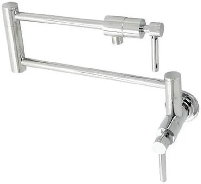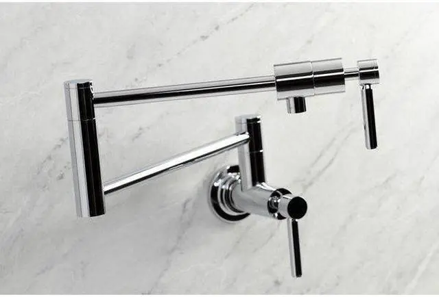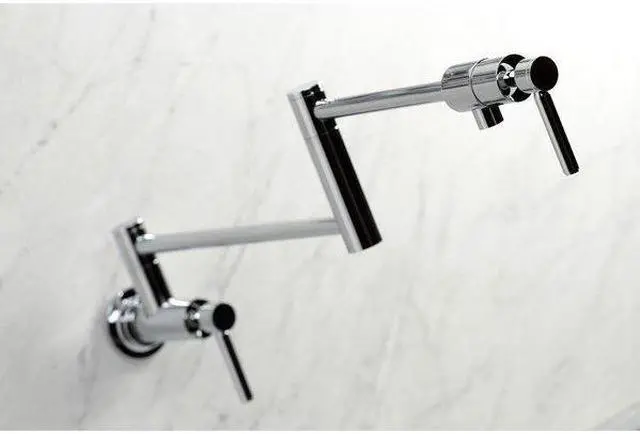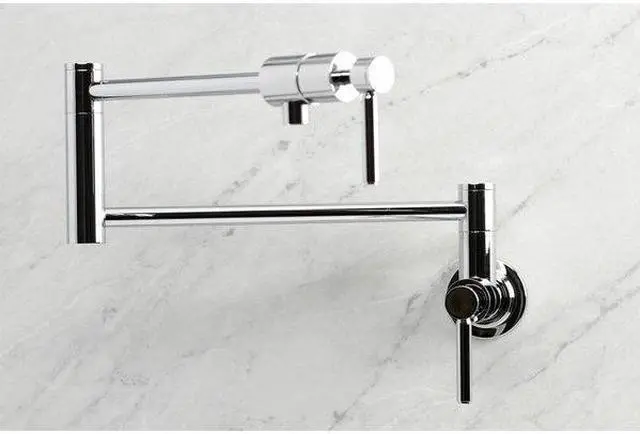 California Proposition 65: This product contains a chemical known to the State of California to cause birth defects or other reproductive harm. This faucet boasts bold, sleek design with its cylindrical styling. As an excellent tool to quickly, easily, and stylishly fill pots, eliminate strain on your joints. Pot-fillers are useful gadgets placed directly above the stove, providing easily accessible water. The foldable swing arms of this pot filler allow for extendable reach of up to 21.5" of length and provide long-lasting function due to their sturdy brass construction. Additionally, the dual handles prevent unwanted water spillage while enhancing the modern theme.