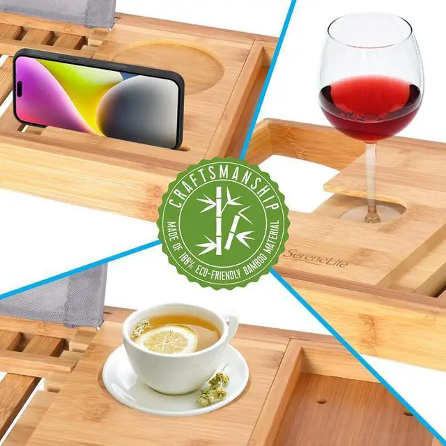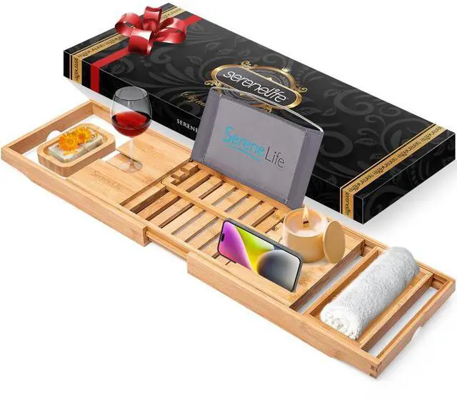 Whether as a gift or a self-care essential, the SereneLife Bamboo Bathtub Caddy is perfect for transforming your bath into a luxurious home spa retreat.