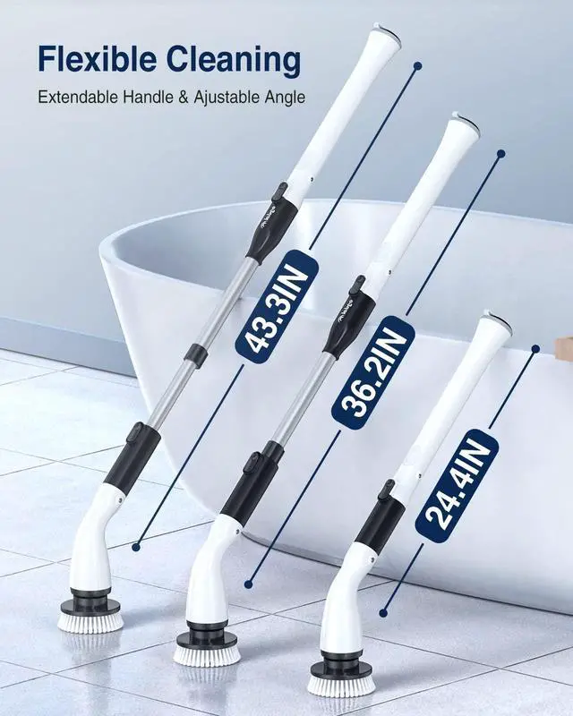 The extended rod makes the tile floor scrubber stretchable from 24.4 to 43.3in, being friendly to users of different heights (4.9ft-6ft), so you can clean everywhere without bending down or a chair to reach, caring for the elderly and those with waist pain.