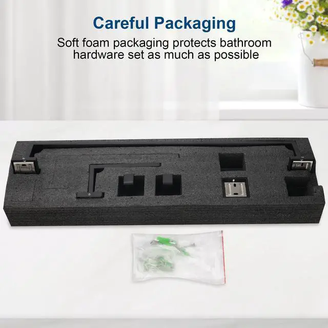 Elevate the style and functionality of your bathroom with this comprehensive hardware set. Meticulously crafted with attention to detail, this collection offers a cohesive look that ties together all the essential elements. From sleek towel bars and stylish robe hooks to sturdy toilet paper holders and elegant cabinet pulls, each piece harmonizes seamlessly to create a polished and inviting space. With a range of finishes to choose from, you can effortlessly match the set to your existing decor or make a bold statement. Constructed with durable materials, this hardware set promises lasting beauty and reliable performance for years to come. Upgrade your bathroom's aesthetic and experience the convenience of having all the necessary accents in one coordinated package.