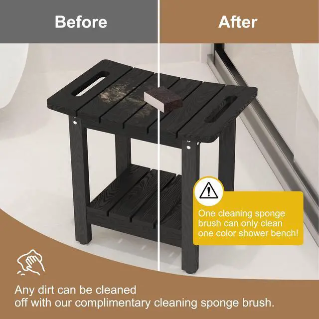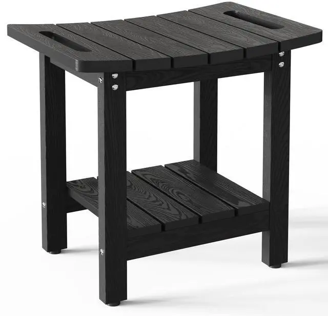 oridom HIPS Shower Benches for Inside Shower, Shower Stool with Space-Efficient Storage Shelf, Waterproof Shower Chair Seat for Spa Bathroom, Non-Mouldy/Non-Slip/Handles/Indoor or Outdoor Use(Black)