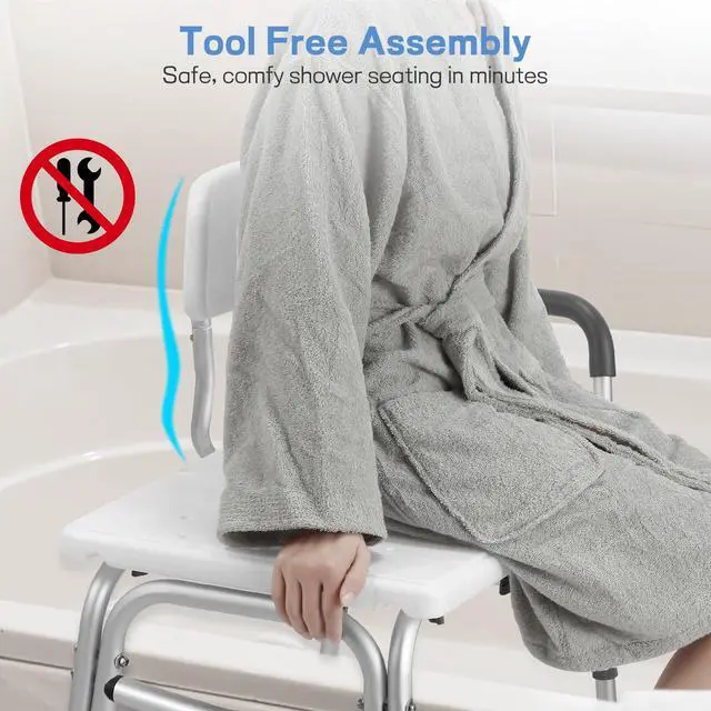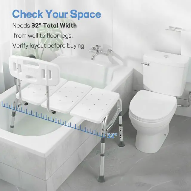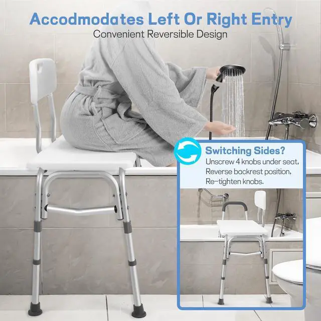 Customizable & Universal Fit: Features a 5-level height adjustment (17.75" to 21.75") to clear any tub wall. The reversible backrest and foam-padded armrest allow for both left and right-side entry, making it perfect for any bathroom layout.