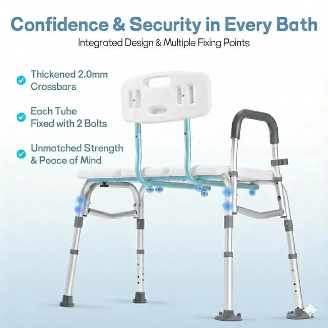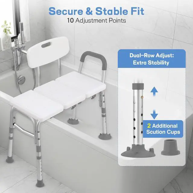 Medical-Grade Durability: Constructed with a rust-proof aluminum frame and a textured, slip-resistant seat with drainage holes. Extra-wide suction cup feet lock the bench in place for maximum stability on wet floors.