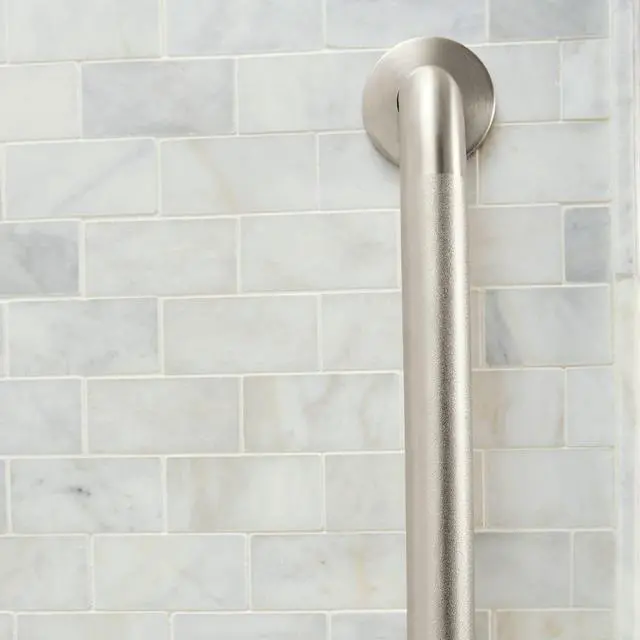 Measuring 12 inches in length and 1.25 inches in diameter, this shower grab bar accommodates hands of all sizes and supports up to 500 pounds. Constructed from durable stainless steel, it features a corrosion-resistant finish to ensure lasting performance. Stylish end covers conceal the mounting hardware for a clean, seamless look.