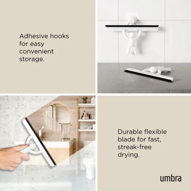 Buddy Bathroom Squeegee for Shower, Mirror, Window - Adhesive Storage Hook Included