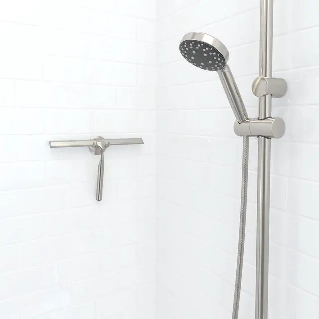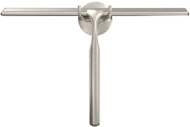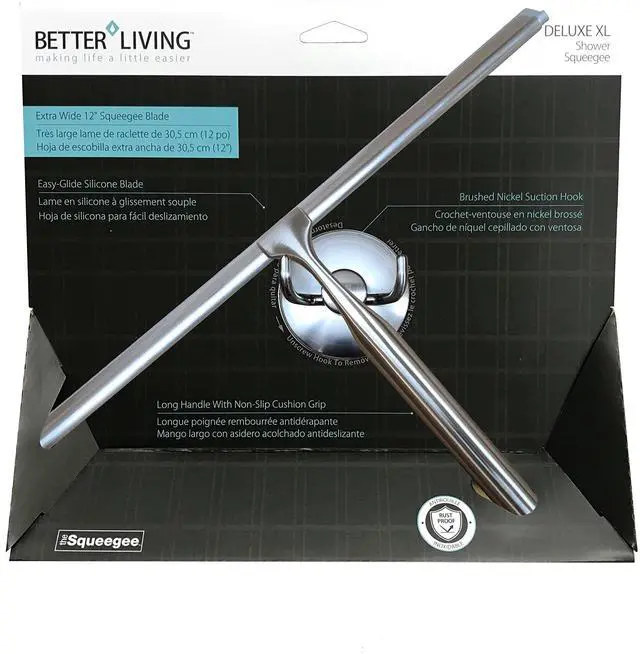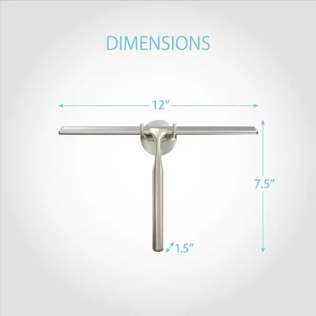 Deluxe XL Shower Squeegee, Multi-Purpose Silicone Squeegee Blade with Storage Hook, Rust-Proof Heavy Duty Window, Glass, Shower Scrubber, Windshield Wiper, 12", Brushed Nickel